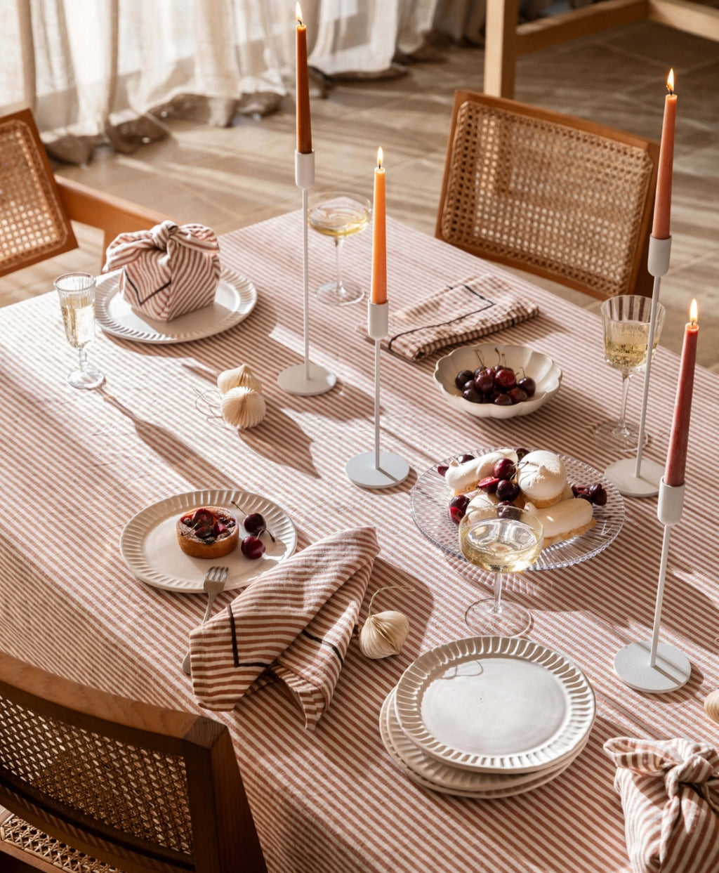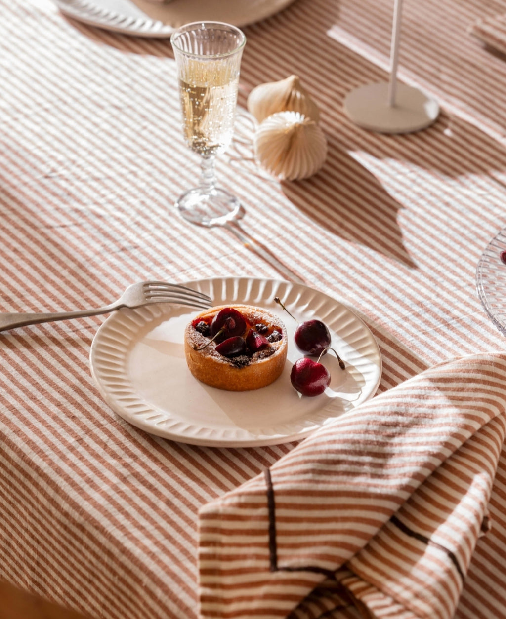 Perfect for everyday dining or effortless entertaining, elevate your table with the Faro collection. This timeless woven striped design is crafted from a luxurious blend of organic cotton and linen, with a contrast embroidered border.