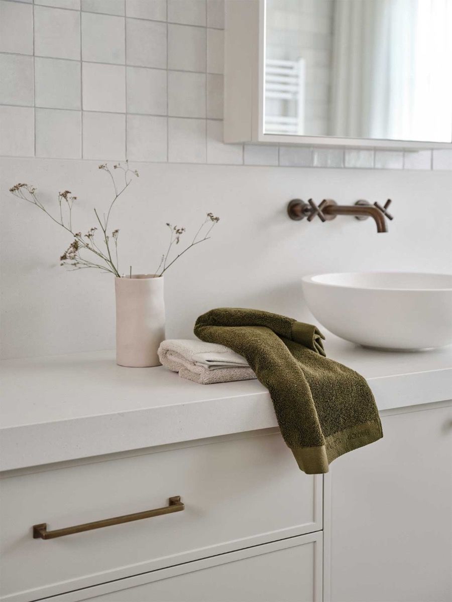 We've taken the essence of pure indulgence - Australian combed cotton and woven it into every fibre of these extraordinary towels. Imagine wrapping yourself in a cloud of softness after each bath, feeling the gentle caress of our ultra-plush 700GSM weave against your skin. That's the Haven experience. Crafted with meticulous care and an unwavering commitment to quality, our Haven Hand Towel in Sage showcases the finest Australian-grown cotton. We've employed an innovative super low twist technique, resulting in longer threads and a fluffier texture that will make you wonder how you ever lived without it. This isn't just a towel; it's a daily luxury that transforms your bathroom into a personal spa retreat.
